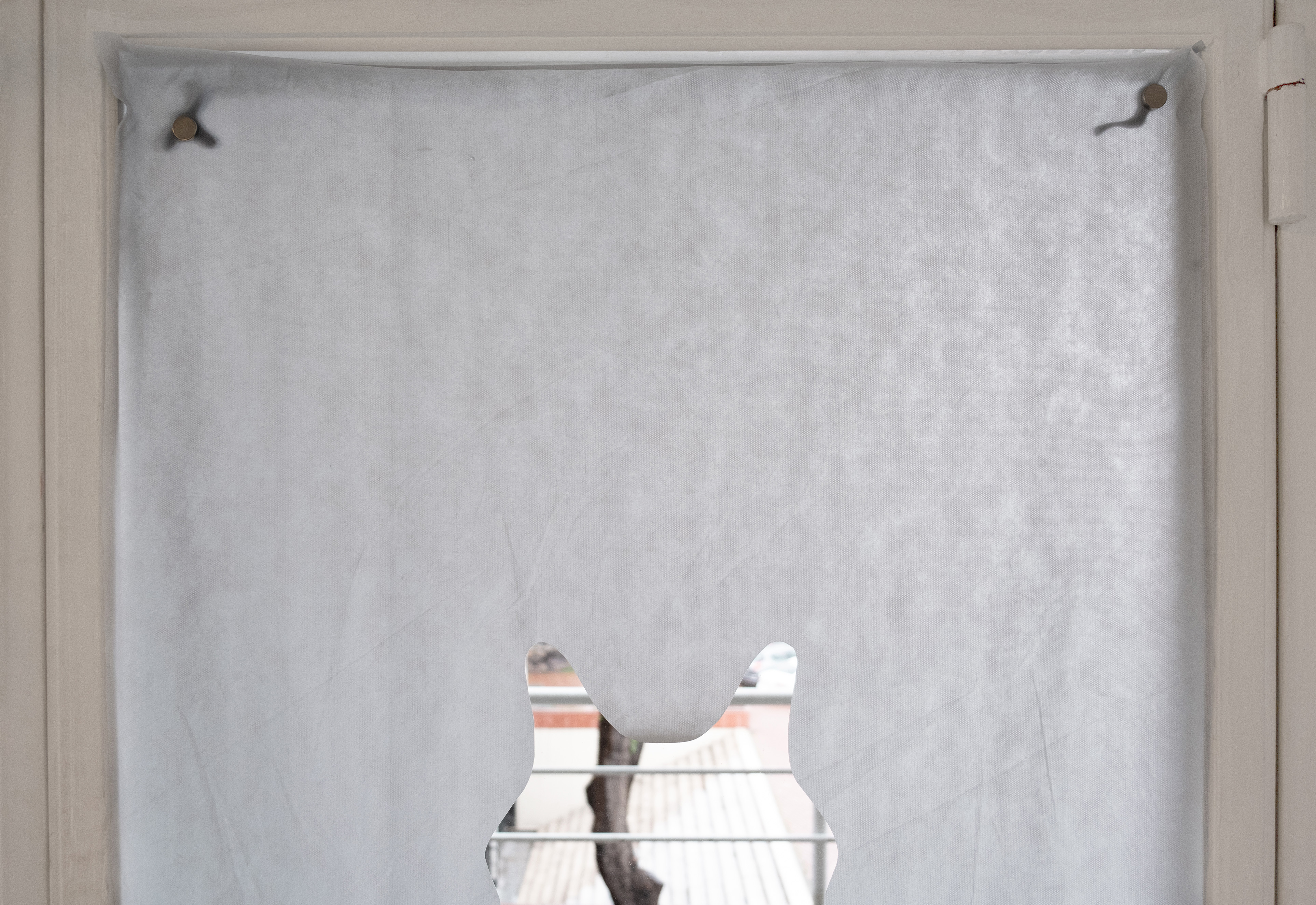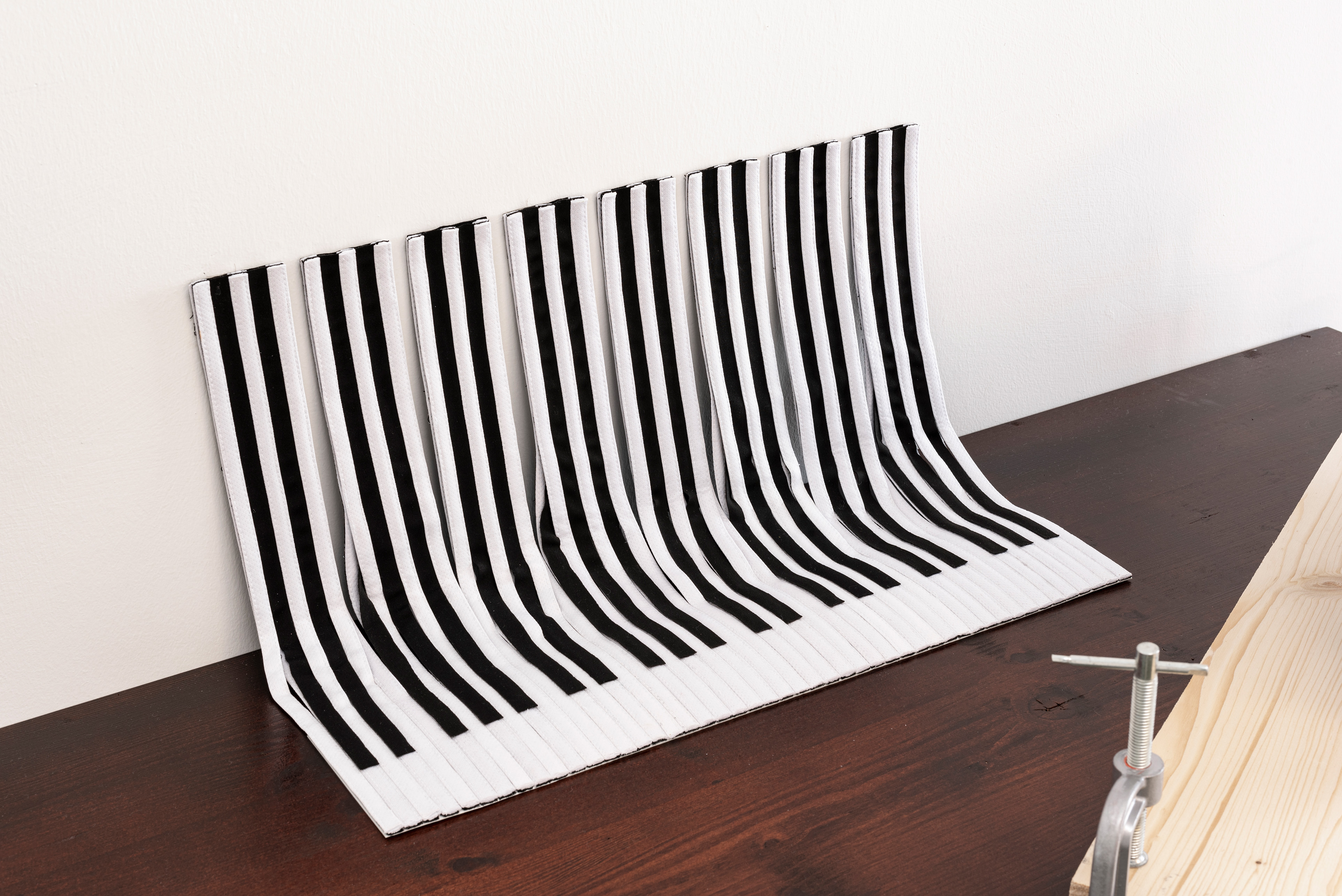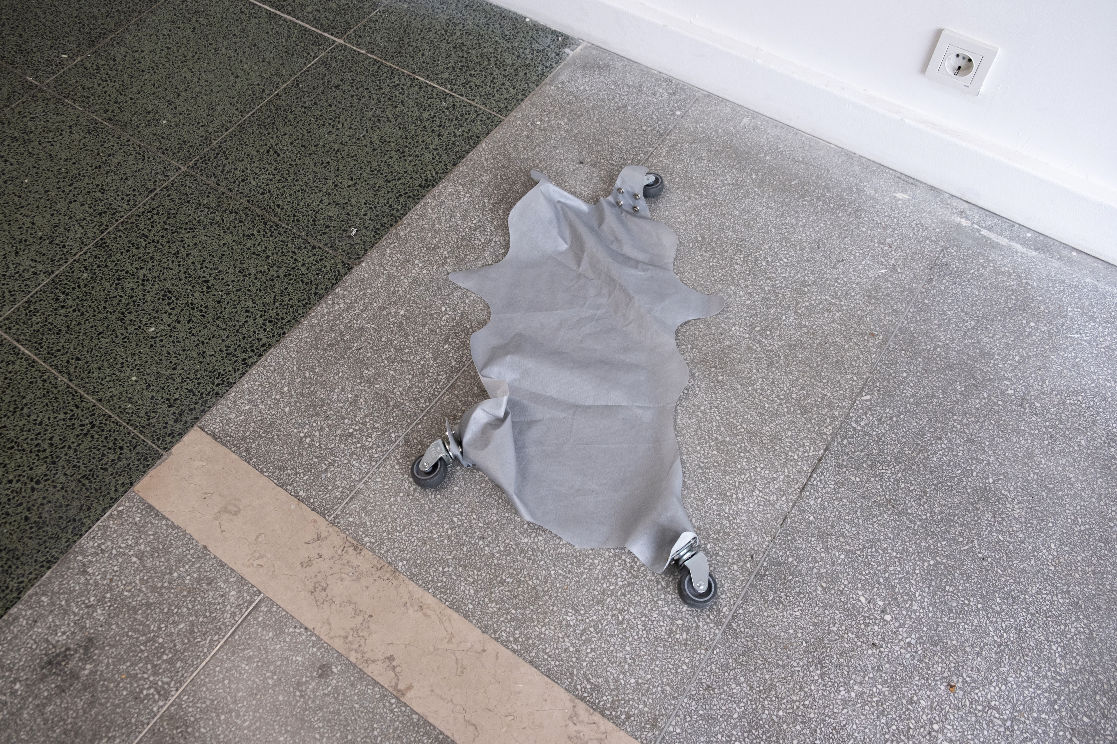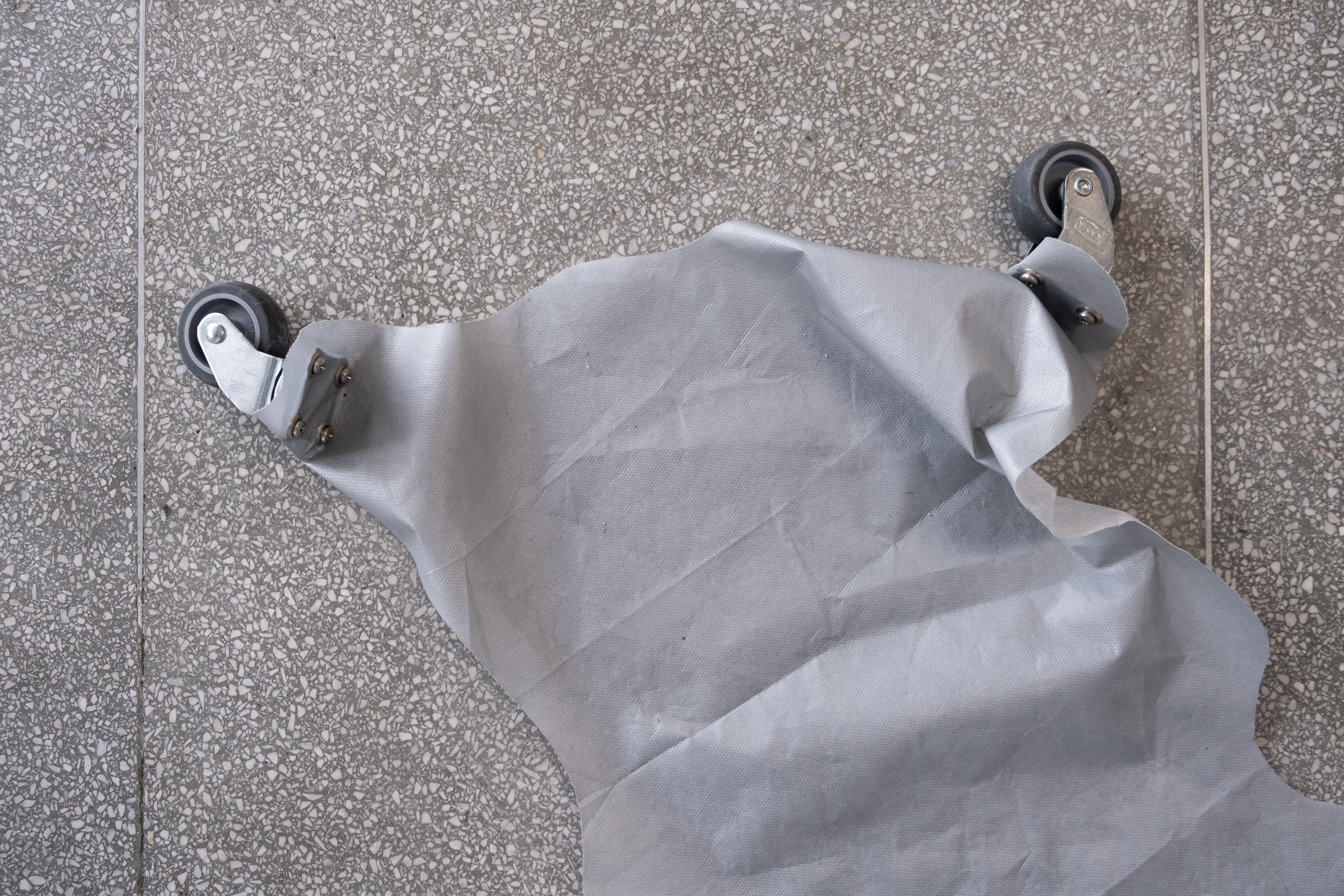 Folded skin, 2021. Car cover, transport wheel, magnet, 55 x 27 cm