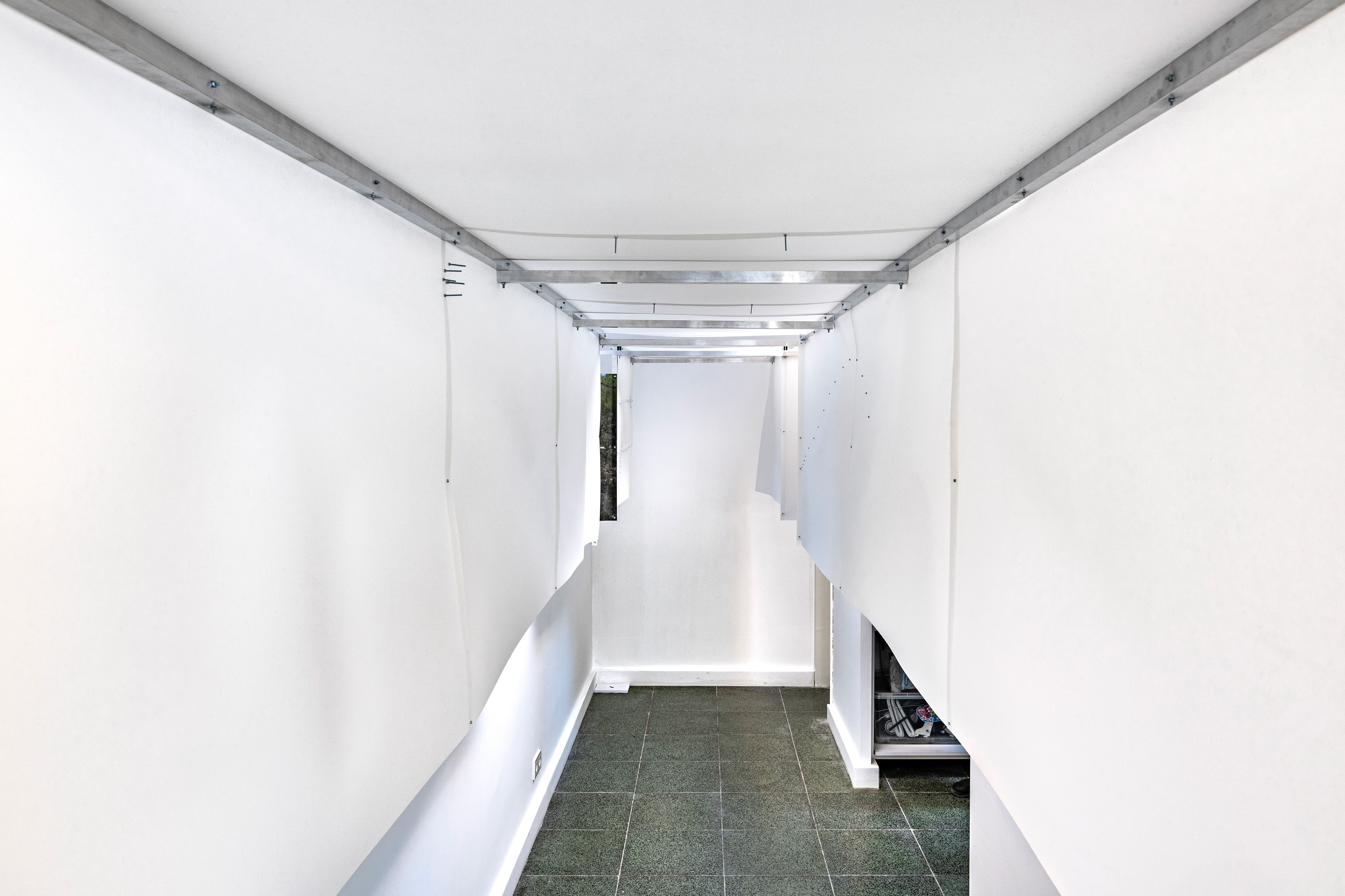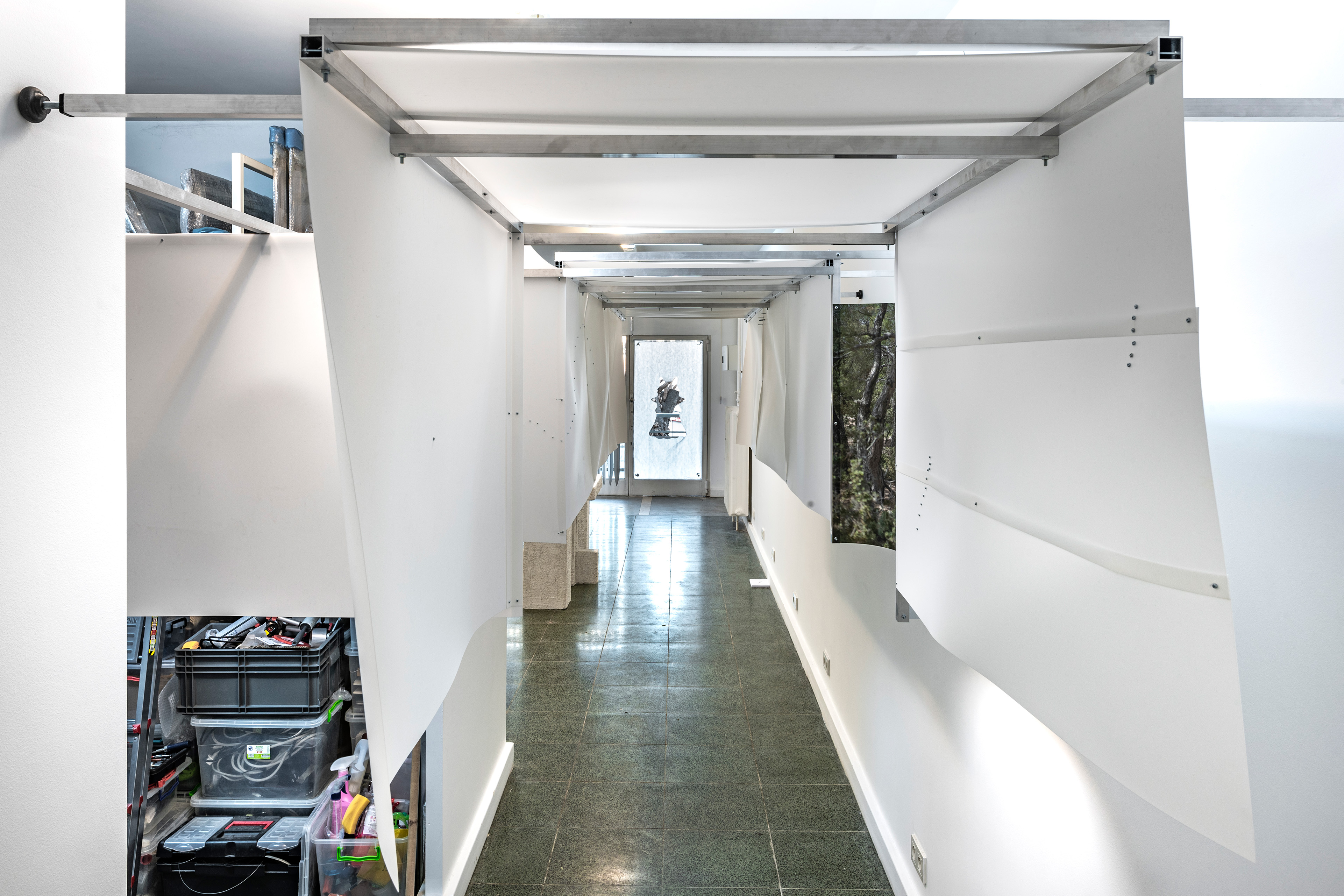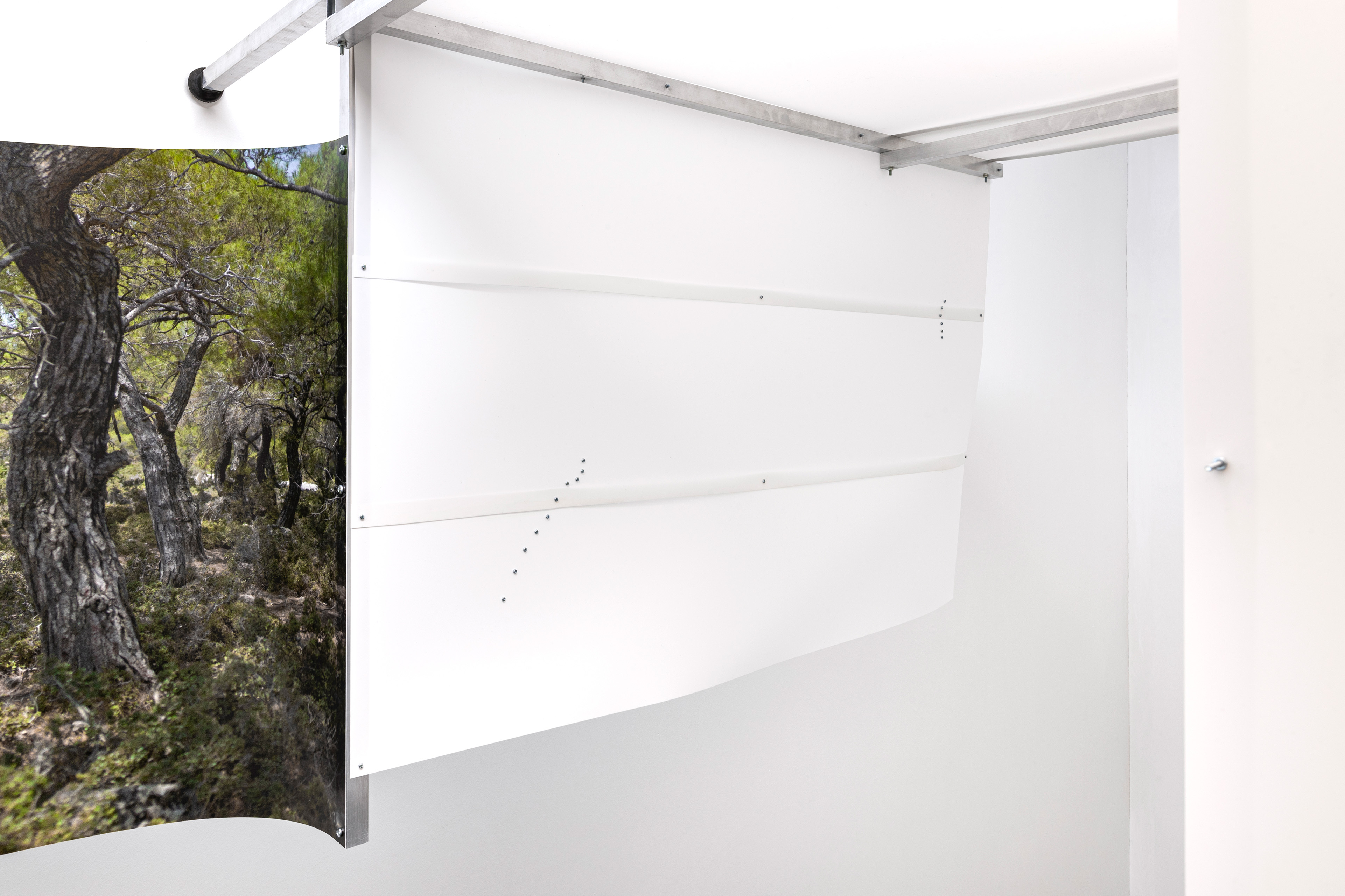 Water and Bad, 2021. Aluminum profile, screw, nut, pp plastic sheet, UV print on pp plastic sheet.