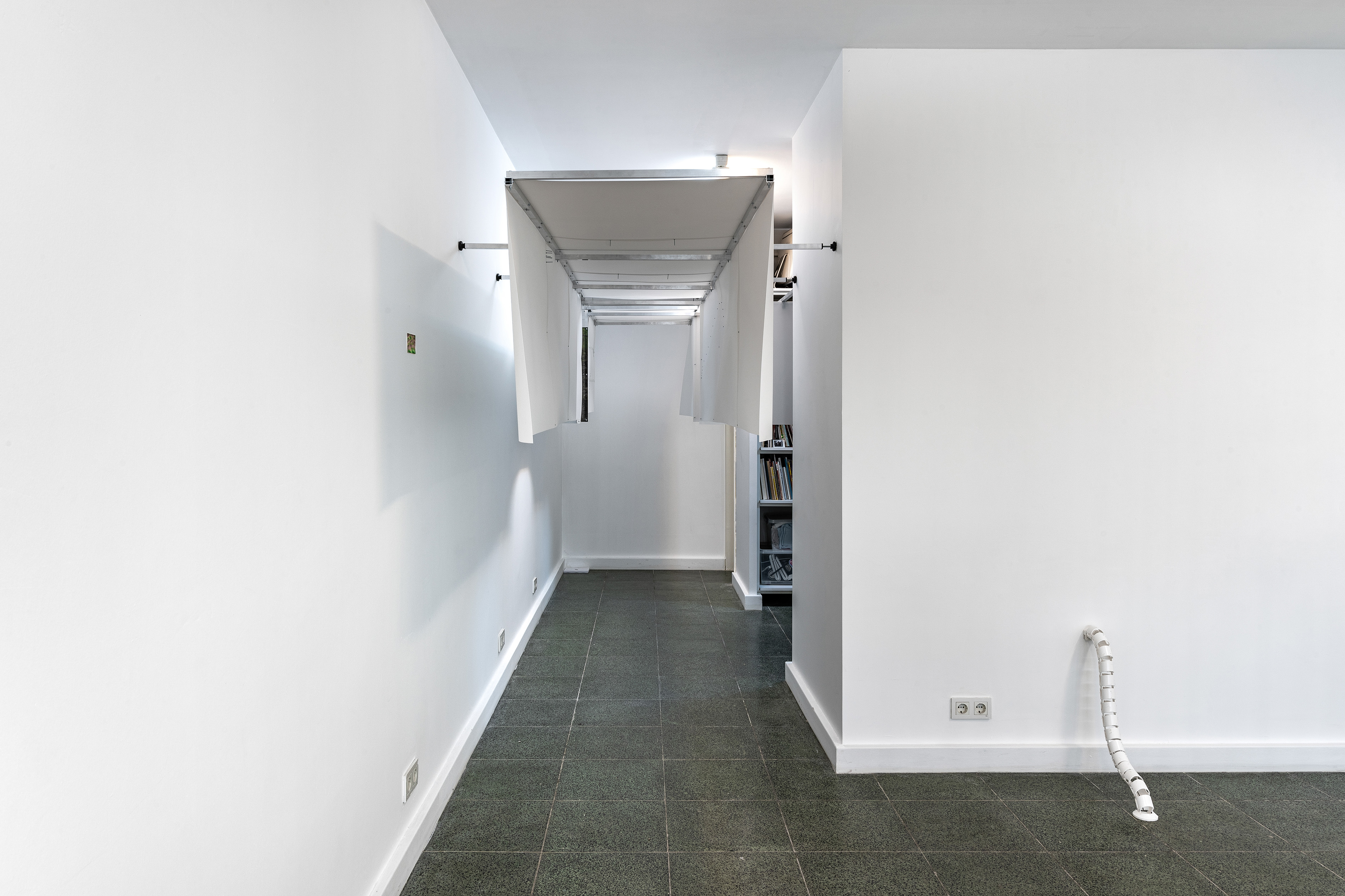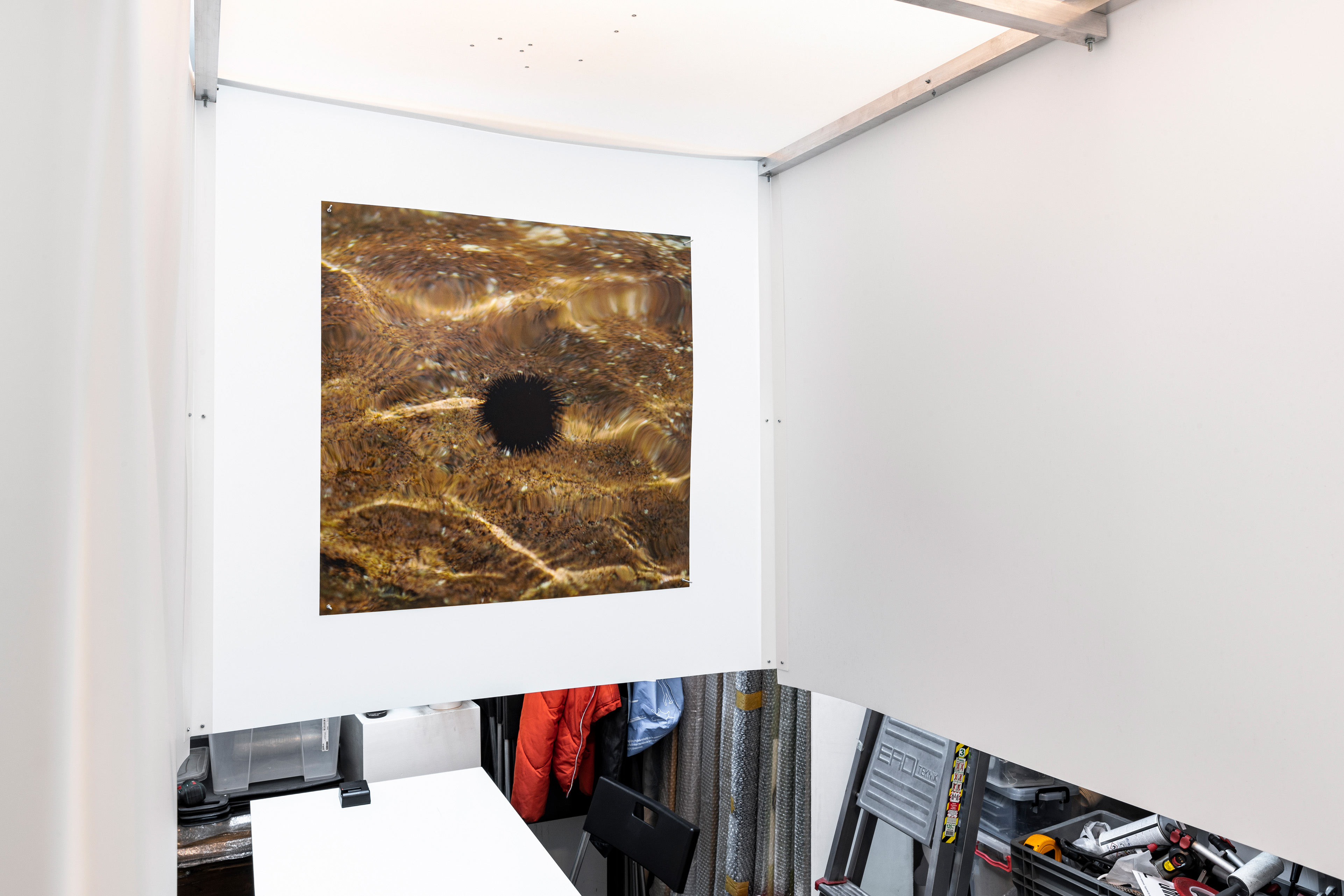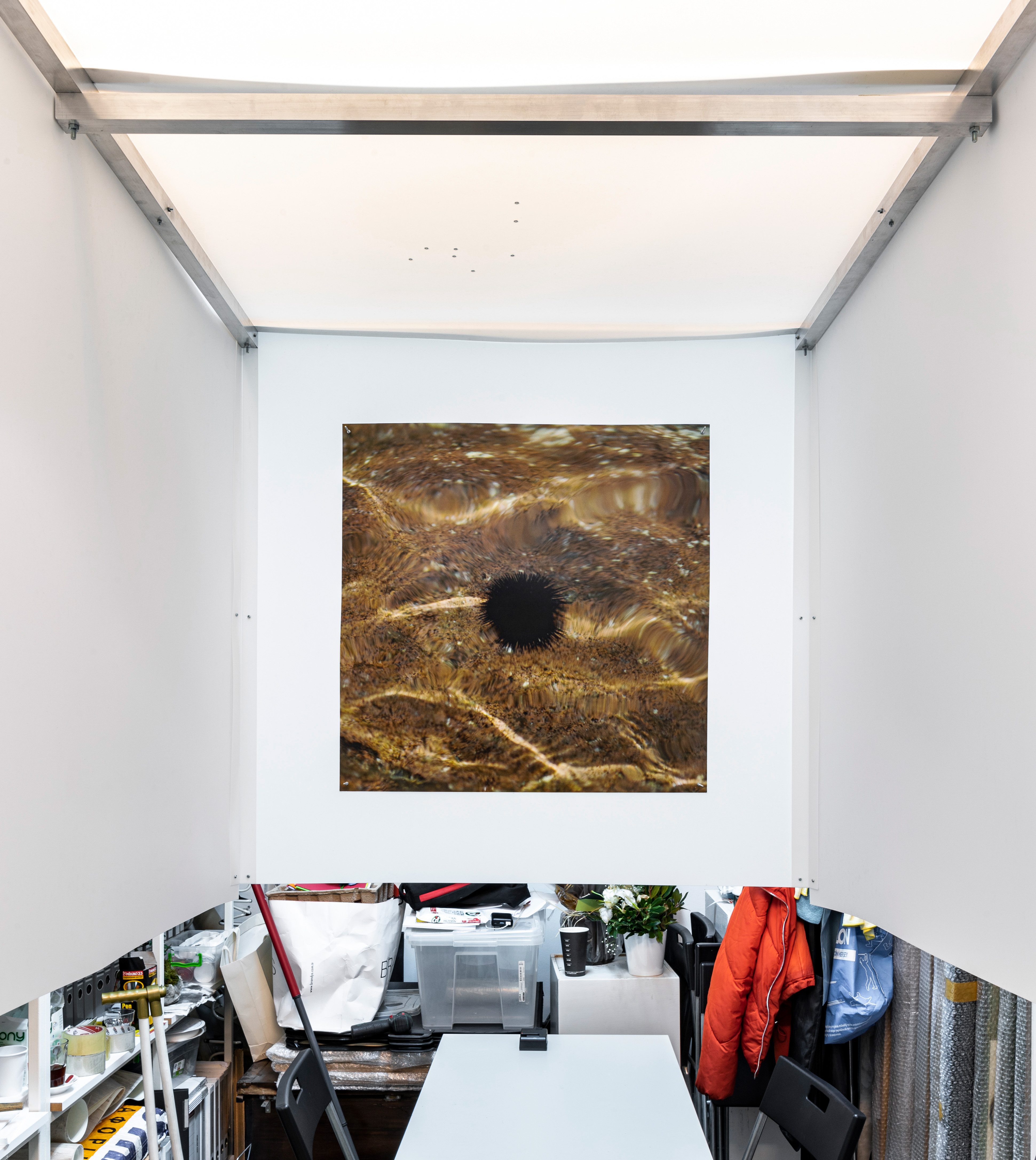 Water and Bad, 2021. Aluminum profile, screw, nut, pp plastic sheet, UV print on pp plastic sheet.