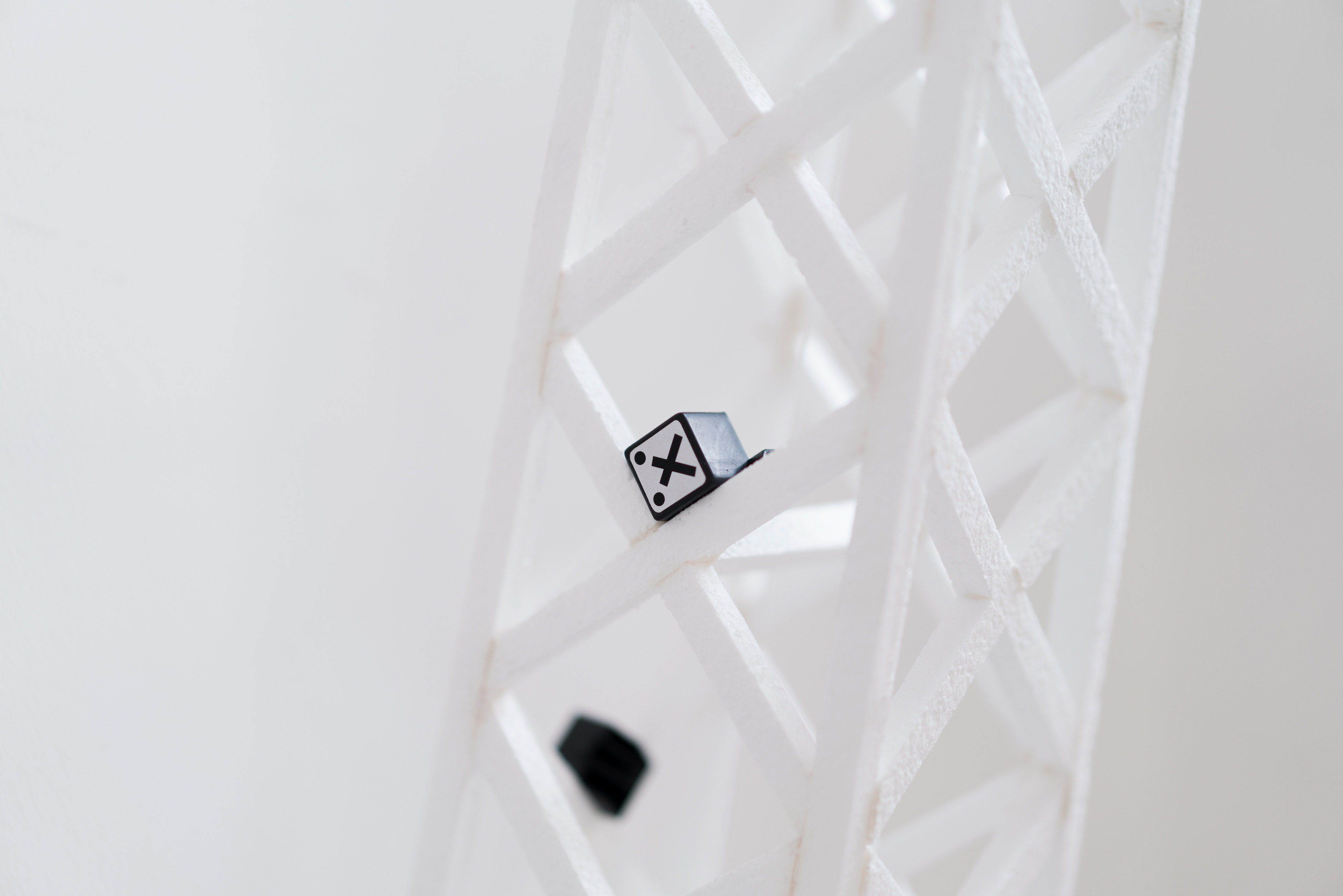 Value Threshold, 2019. Scissors, UV print on PVC, polyurethane tube, vinyl print, stainless steel, 25 x 25 cm
