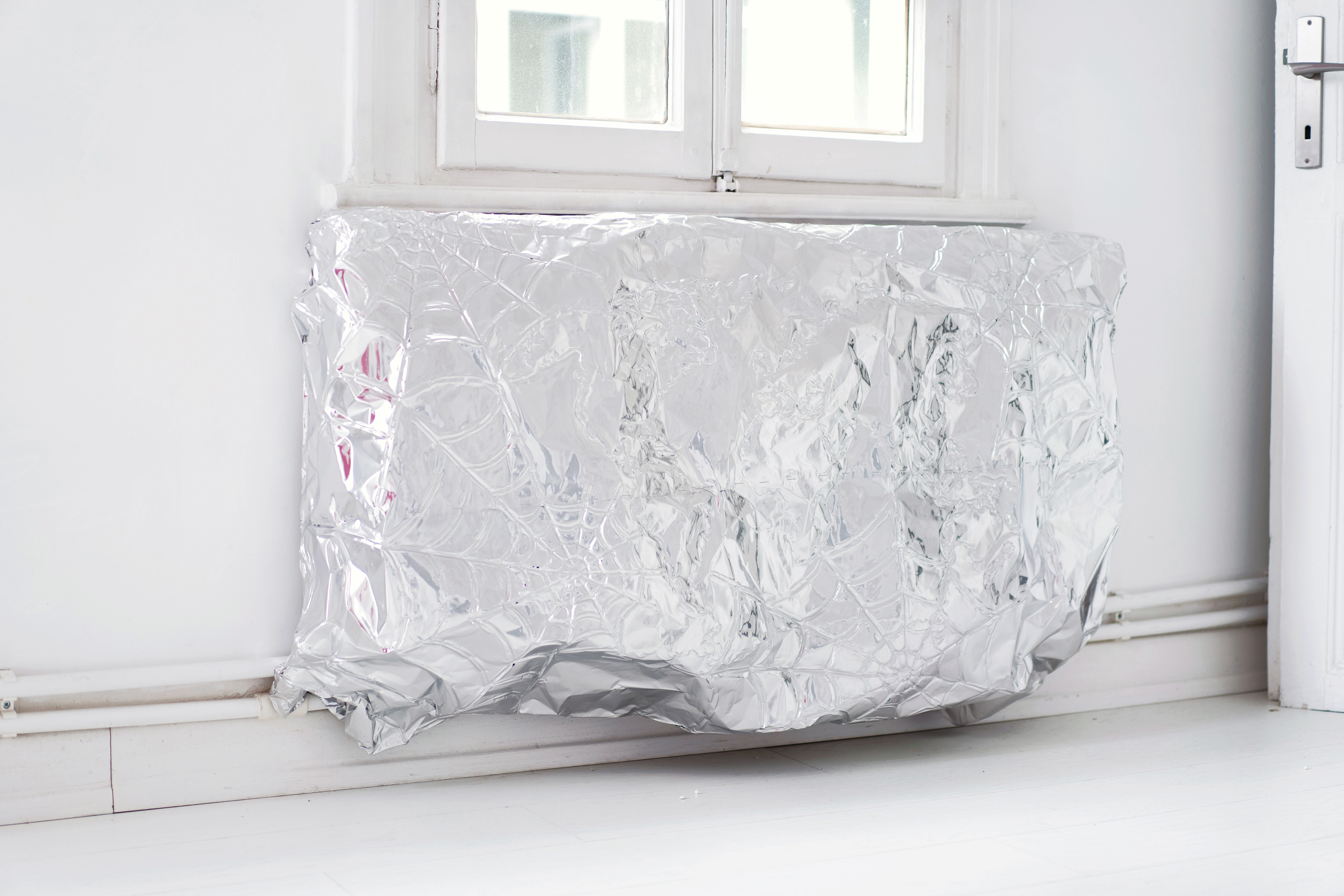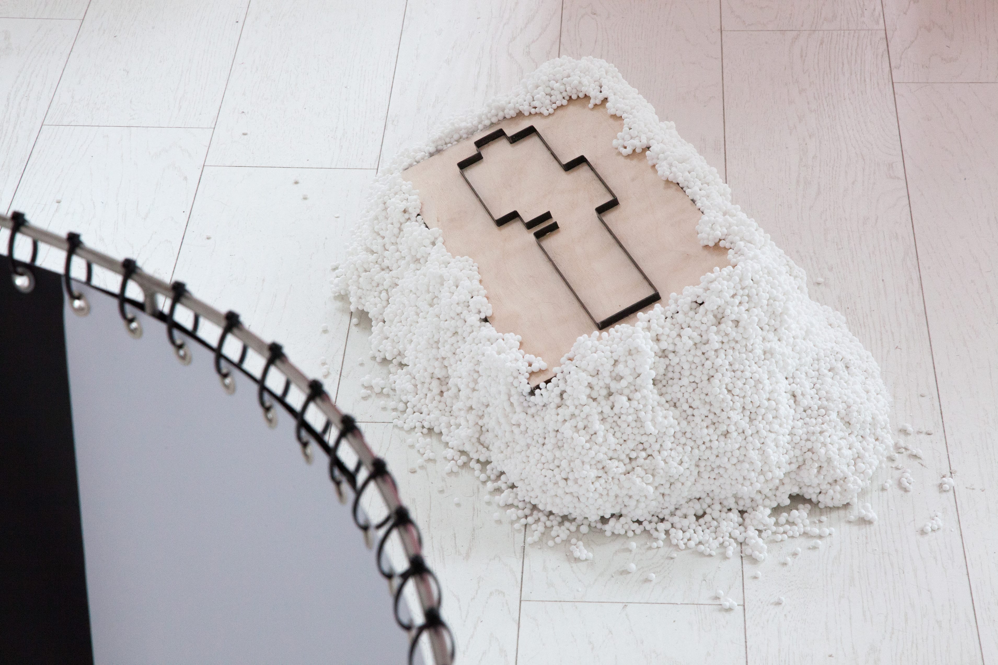 Unscaled Box, 2019. Package folding mold, ball styrofoam, 45 x 30 x 25 cm
