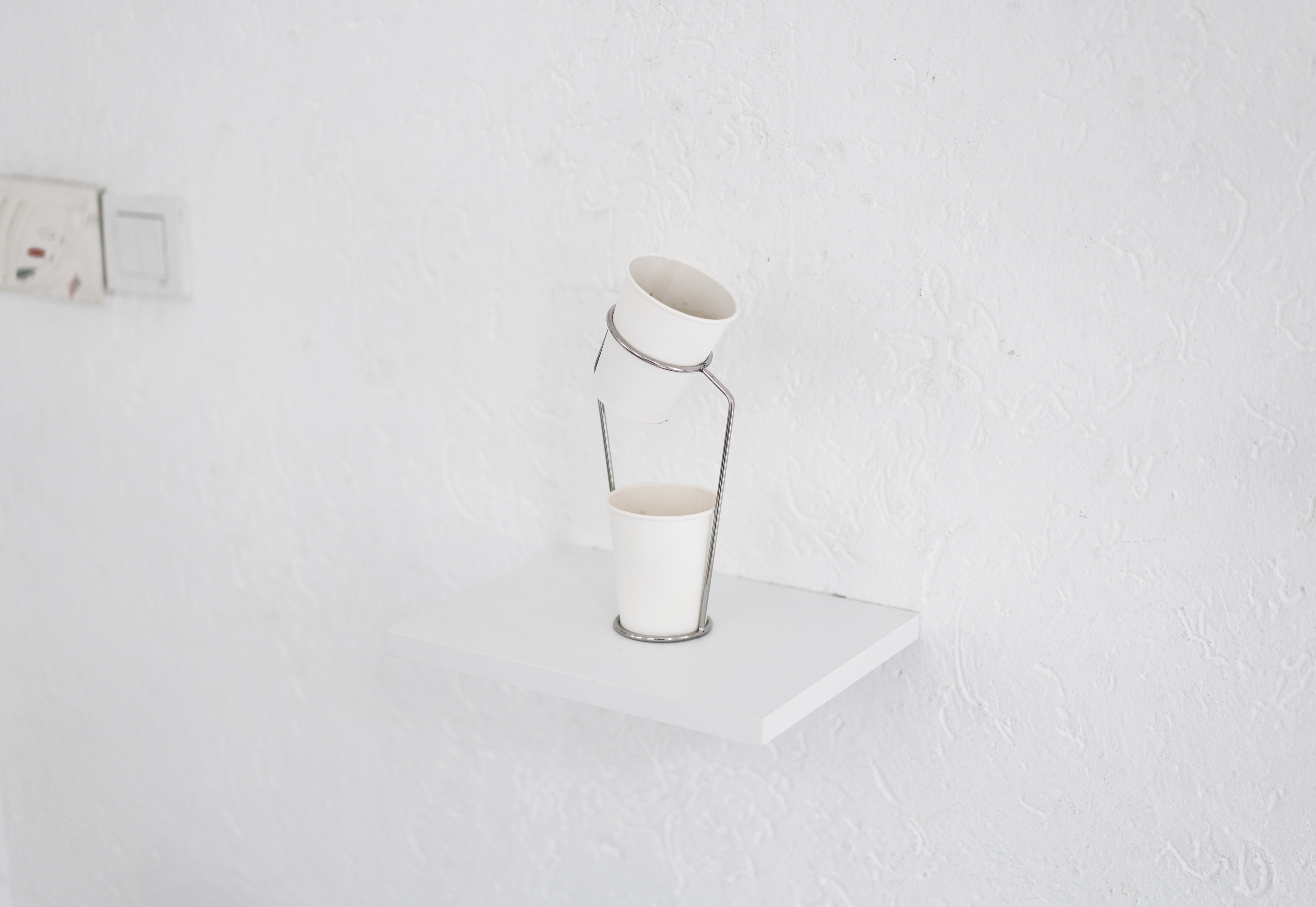 Dripping Coffee, 2019. Cardboard cup, stainless steel, 20 x 15 x 18 cm