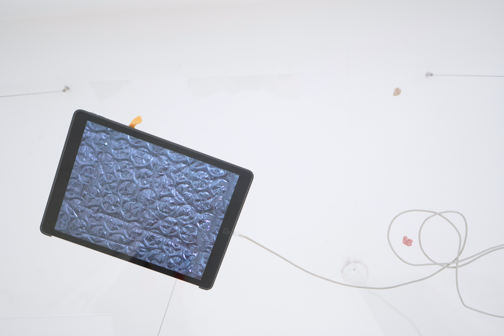 Evidence Cycle, 2019. Tablet, gum, plexiglass, single-channel video 5’17, 90 x 50 cm