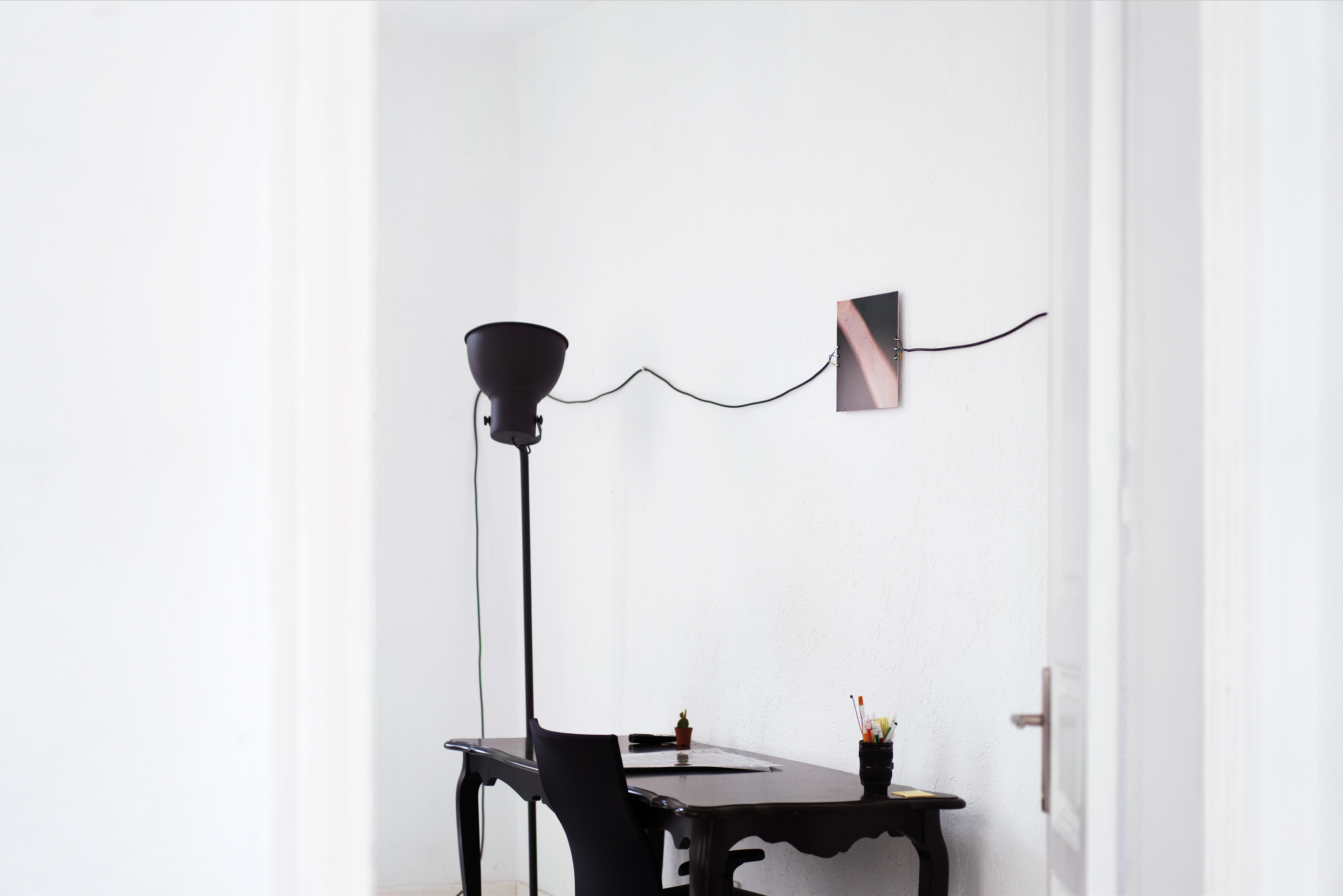 I Closed My Eyes And Watch It Burn, 2019. Aluminum sublimation, soldered extension lead, 30x 30 cm