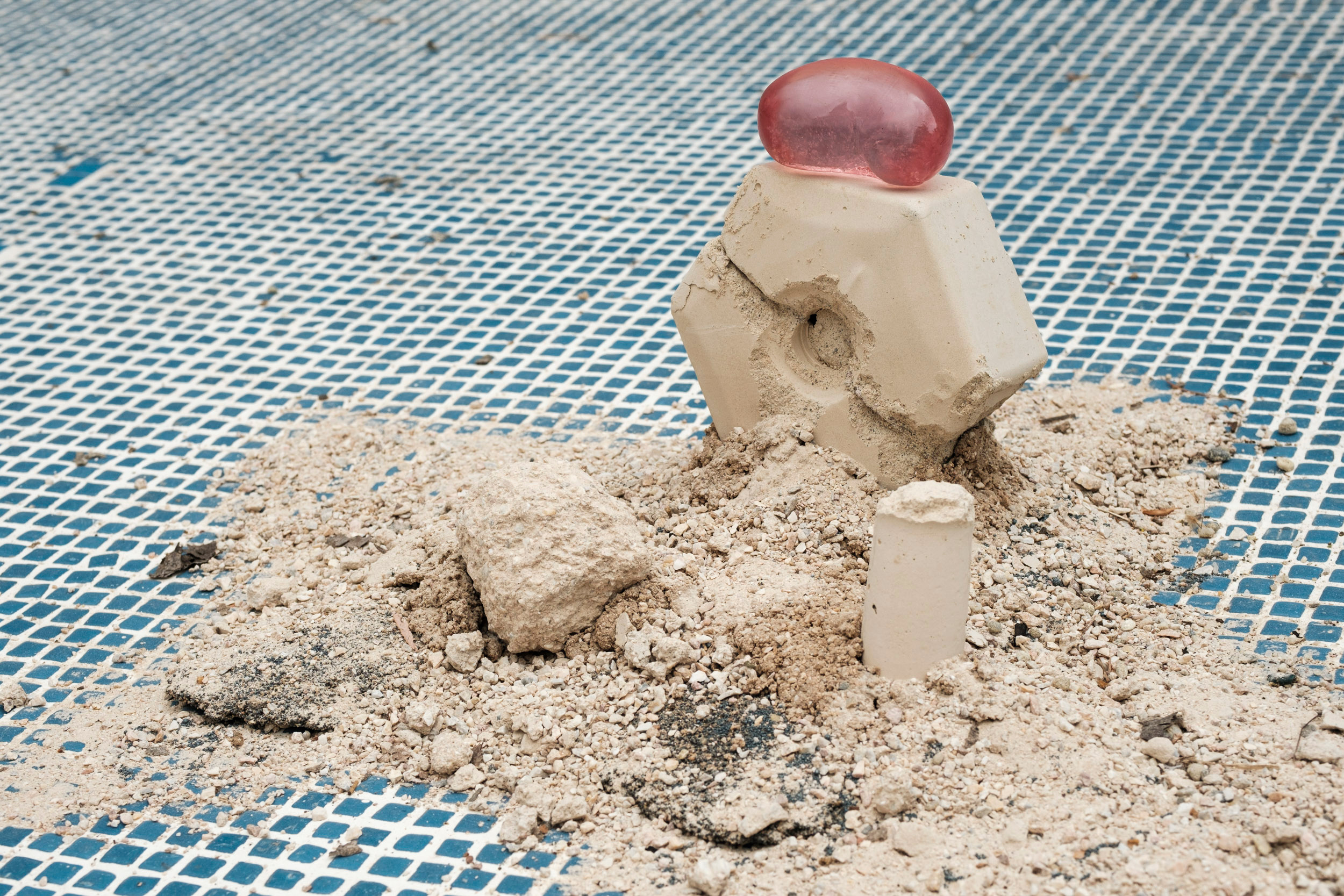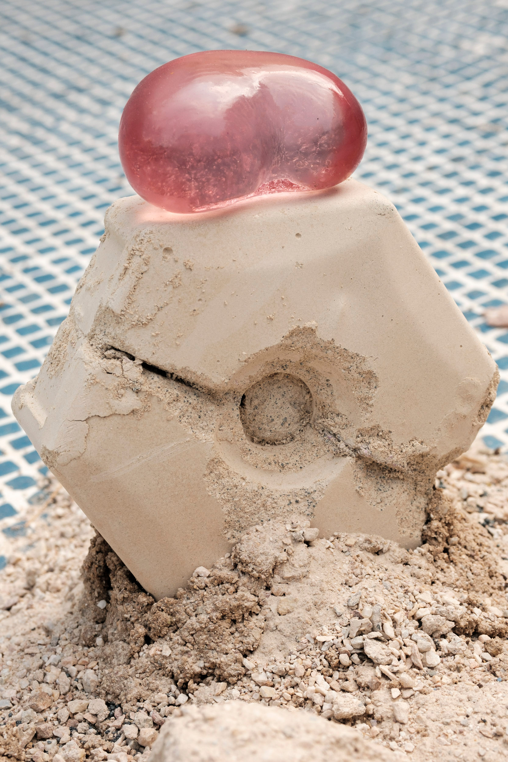 Untitled 2, 2021. Accompanied by Pınar Marul. Sand, industrial dust, silicone epoxy, 35 x 20 x 11 cm