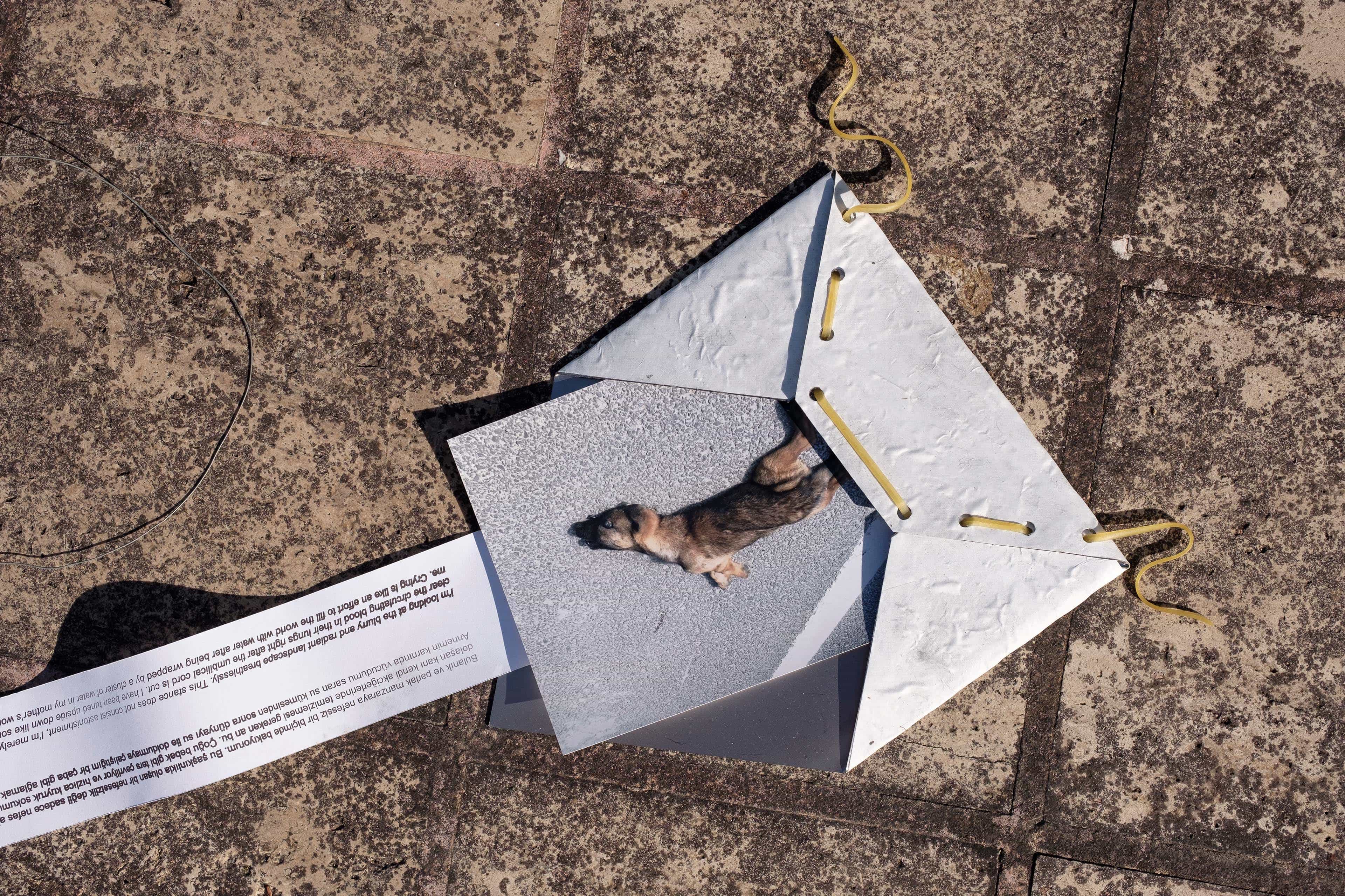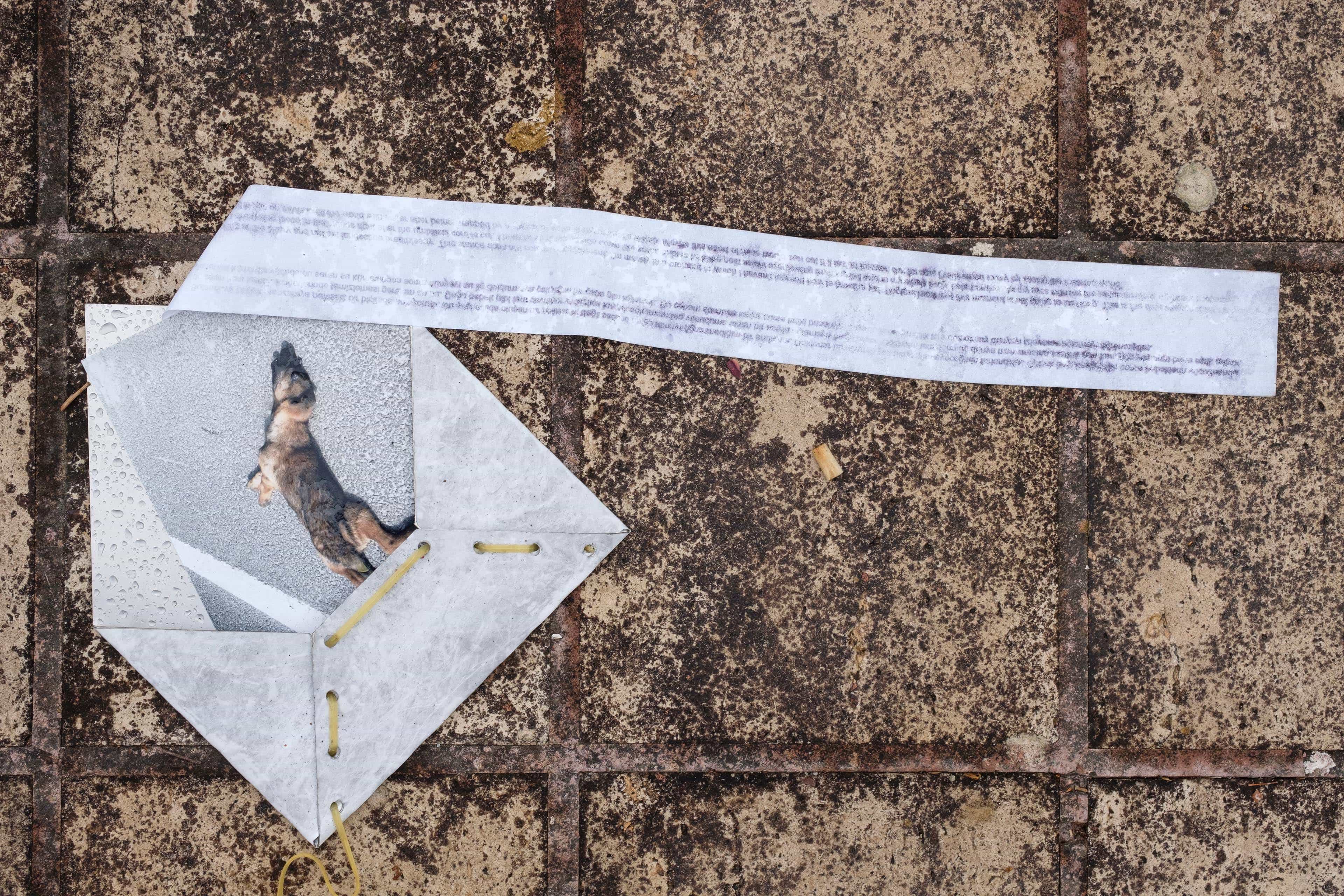 Time Pact, 2020. Photo print, stainless steel, spaghetti, tyvek paper, 90gsm paper, 45 x 17 cm